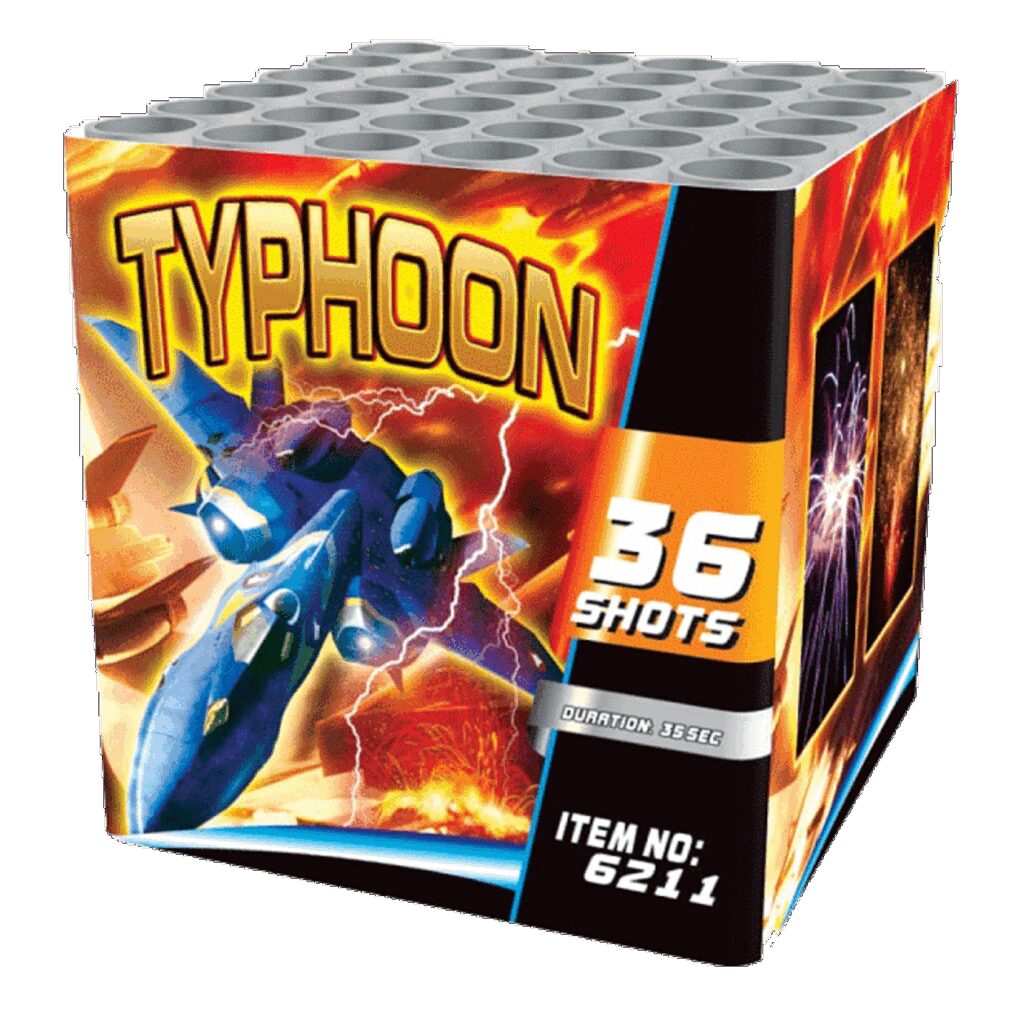 Cafferata Vuurwerk Typhoon 36 shots Goedkoop vuurwerk kopen bij Vuurwerkwinkel Hoofddorp