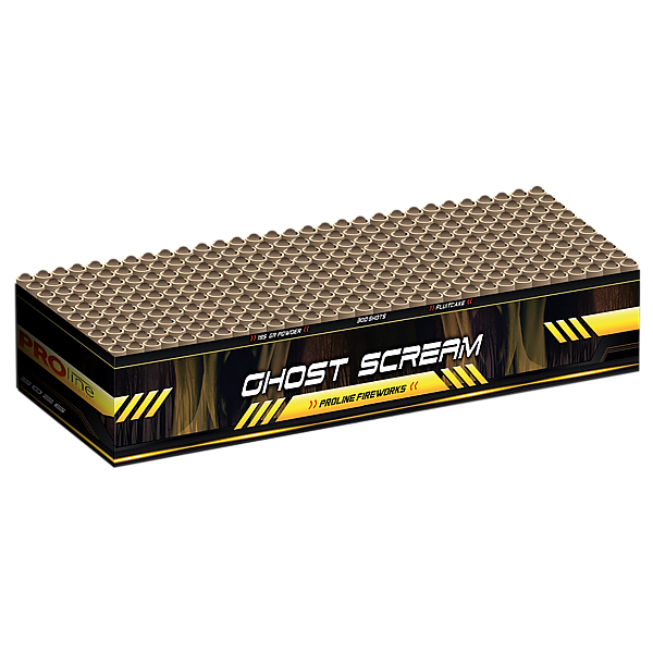 nDe Ghost Scream is een vernieuwde 300 schots fluitbatterij binnen de Pro-line serie. Een fluitbatterij is al jaren een populair artikel binnen het consumentenvuurwerk, maar was altijd gemaakt met plastic buisjes. Pro-line heeft dit ontwerp nu aangepast naar een nieuwe variant, met papieren buisjes. Dus stook ook (w)eco logisch, pak de 300 shots fluitbatterij van Pro-line Fireworks!