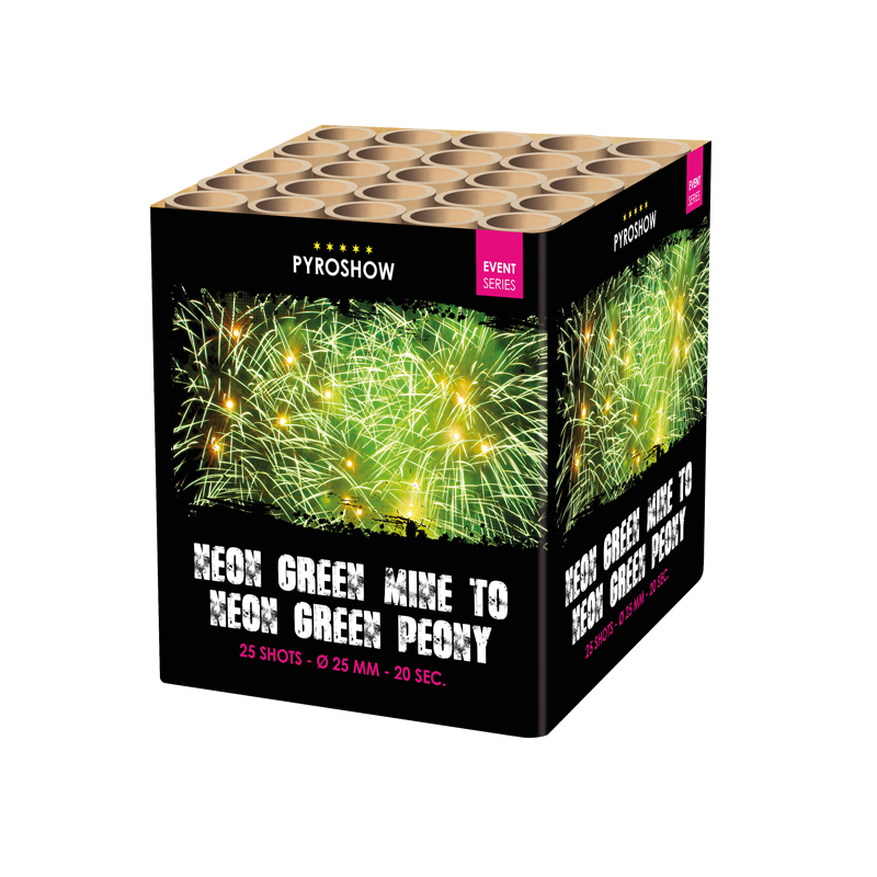 Neon Green Peony w.Green Tail & Mine Goedkoop vuurwerk kopen bij Vuurwerkwinkel Hoofddorp