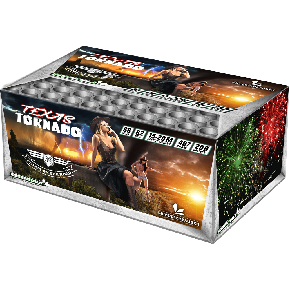 Texas Tornado n n500 gram en 88 shots inclusief een geweldige finale; Wat wil je nog meer van een batterij! Het perfecte sieraad voor uw oudejaarsavond! n nKaliber 20 n